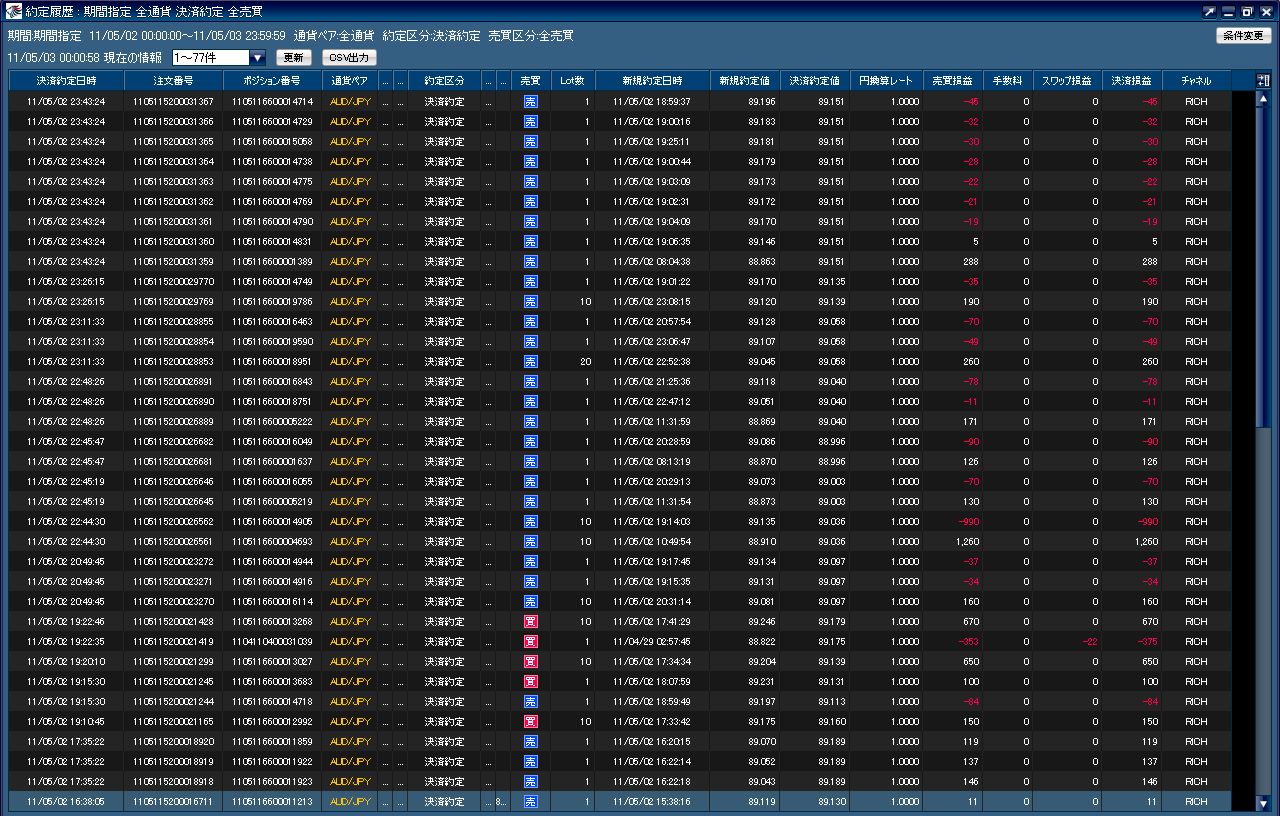 本日のvs口座は負け先行です。